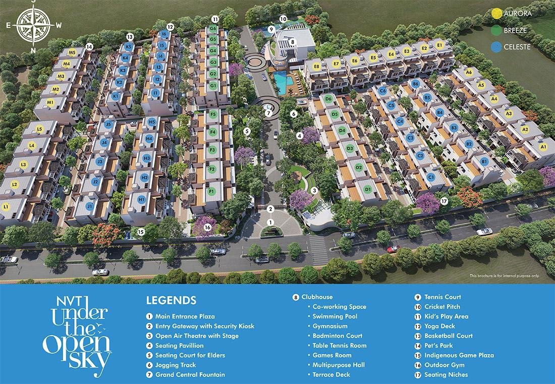 NVT Under The Open Sky is a newly launched luxury villa project by NVT Quality Lifestyle, located at Budigere Cross, Bangalore, near Old Madras Road. Spread across 6.59 acres, the project offers 74 exclusive 4 BHK villas with built-up areas ranging from 3446 to 4240 sq ft.